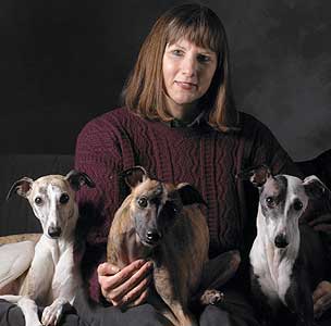 My commitment to my customers is to provide prompt service, friendly advice about your book choices and a few extra perks sent out with your order to let you know how much your patronage is appreciated. The books travel to many destinations in the world, from hand-delivered orders within my own town, to air and sea shipments to worldwide destinations, including the US, Australia, Bahrain and Iceland. The Needle Arts Book Shop Mascots! Celia, Niko and Jazz, my 'wonderful whippets', though neither avid knitters nor book lovers, do enjoy the occasional frolic with a skein of yarn.