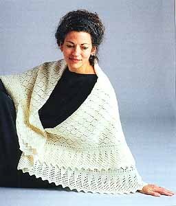 The Spanish Christening Shawl, shown on the left, was inspired by a1950's photo of a baby wrapped in lace and held lovingly by it's grandmother. The center section is a simple diamond lace pattern and the wide garter stitch lace edging makes an elegant scalloped border.